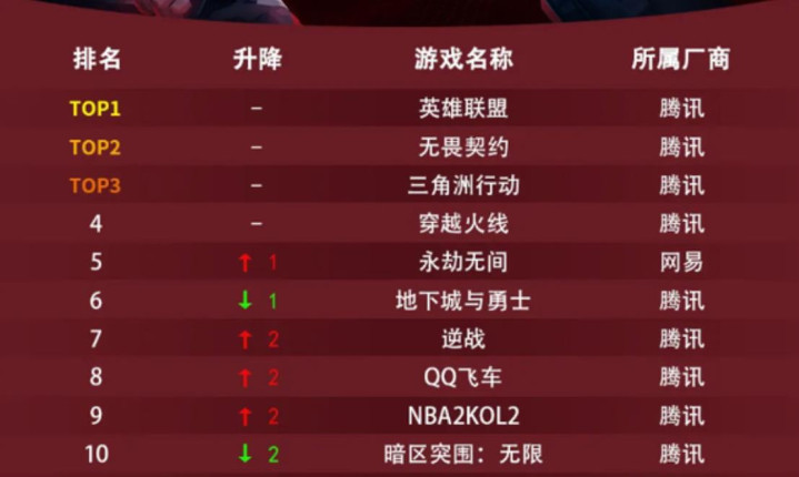 ②第八是QQ飞车;当年旋涡版本,dnf可是被qq飞车超了。都是靠着老玩家的游戏,只能说是半斤八两了。